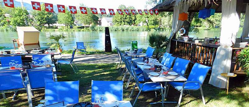 Mitenand am Aarestrand - im Sommer-Beizli neben dem Salzhaus an der Aare - geöffnet jeweils vom Ende Mai bis Ende August.