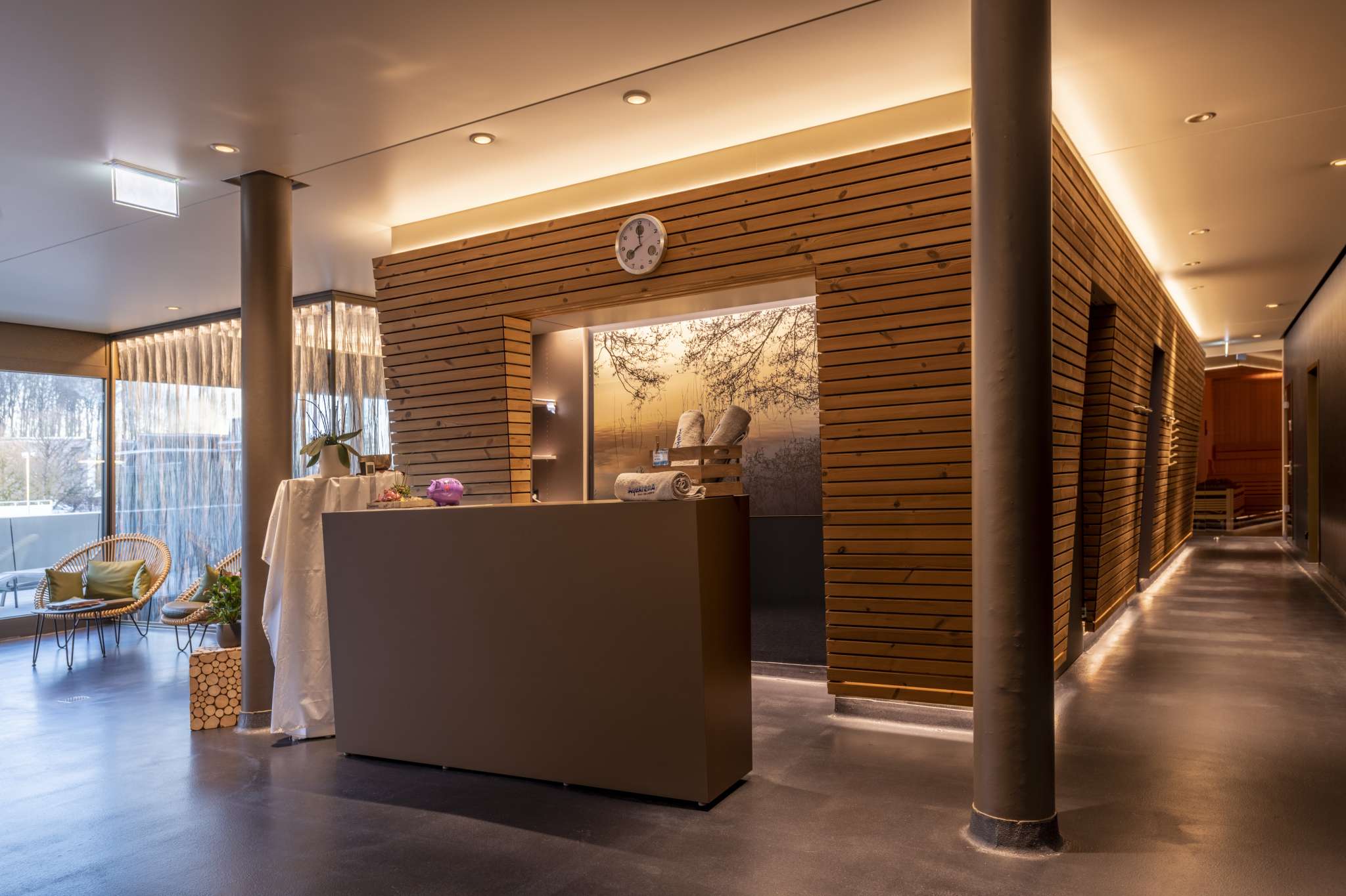Entspannen Sie sich in der Wellness-Oase (gemischter Bereich) mit ihren rund 350m2 oder im kleineren, geschlechtergetrennten Bereich. Verbringen Sie einen Wohlfühltag mit zeitlich unbegrenztem Aufenthalt.