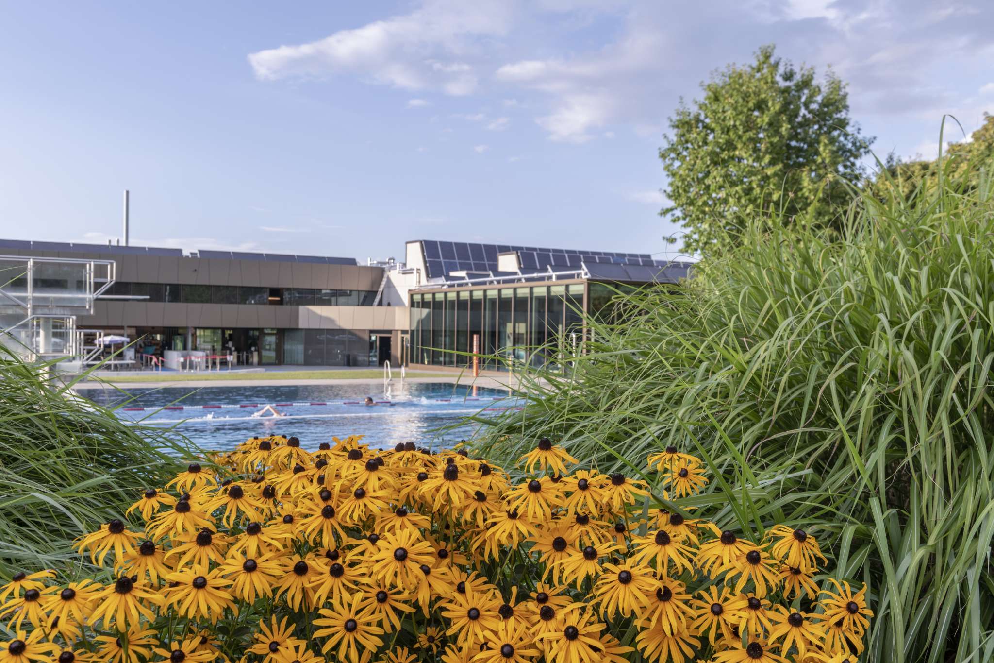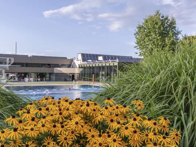 Es erwartet Sie ein grosses Wasserangebot und schöne Liegewiesen zum "Sünnele" und "Pläuschle". Ausgestattet mit einem 50m langen Schwimmerbecken mit 6 Bahnen, Sprungbucht mit 1m und 3m Sprungbrett, Nichtschwimmerbecken 30x25m mit einer Breitwellenrutsche, Kinderplanschbecken mit Rutschbahn, Kinderspielplatz, Beachvolleyballfeld, Fussballplatz, Tischtennistische und einem Badelift für Menschen mit einer Mobilitätsbeeinträchtigung.
