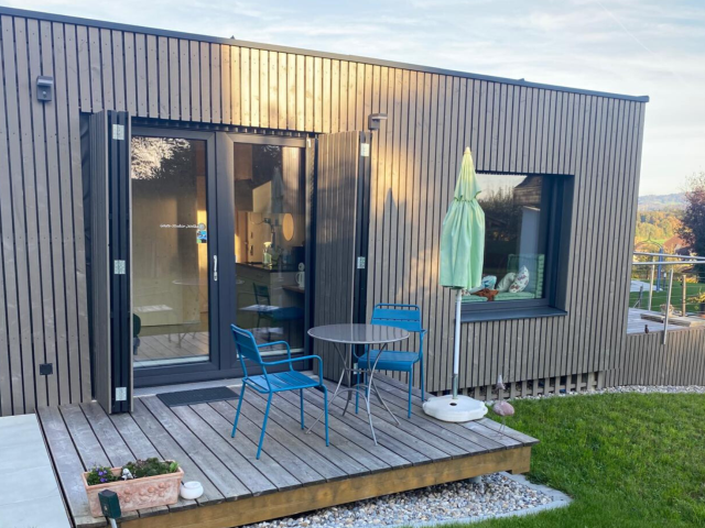 Es steht ein gratis Autoparkplatz direkt vor dem Mini House zur Verfügung. E-Autos und E-Bikes können mit Sonnenstrom aufgeladen werden.