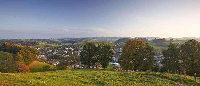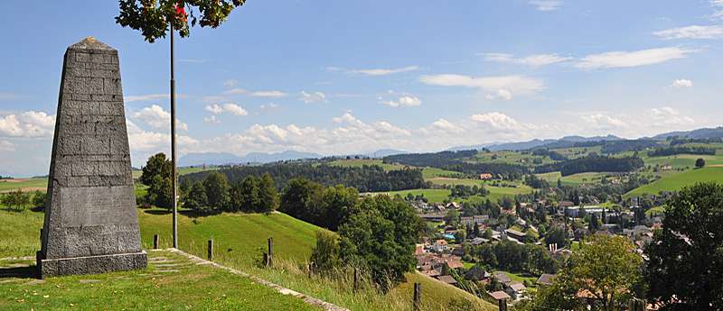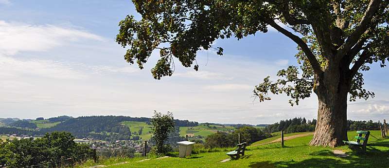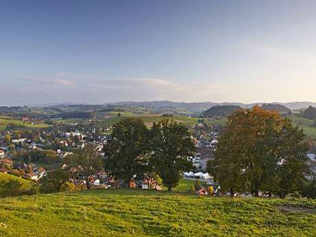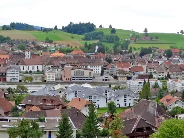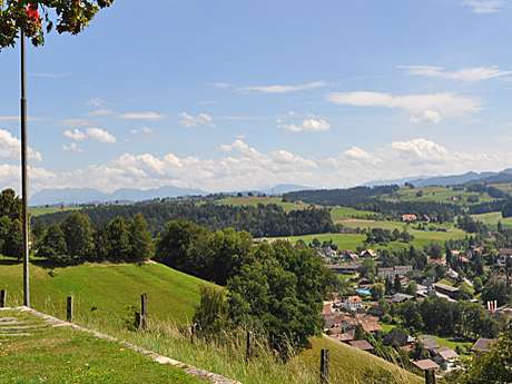 Die Aussicht bietet eine wunderschöne Rundumsicht über das Städtli Huttwil und die lieblichen Hügel Richtung Napf und Emmental. Die Sitzbänkli laden zum Verweilen und innehalten unter schattigen Bäumen ein. Panoramatafeln helfen beim Erkennen der Alpen-Gipfel.