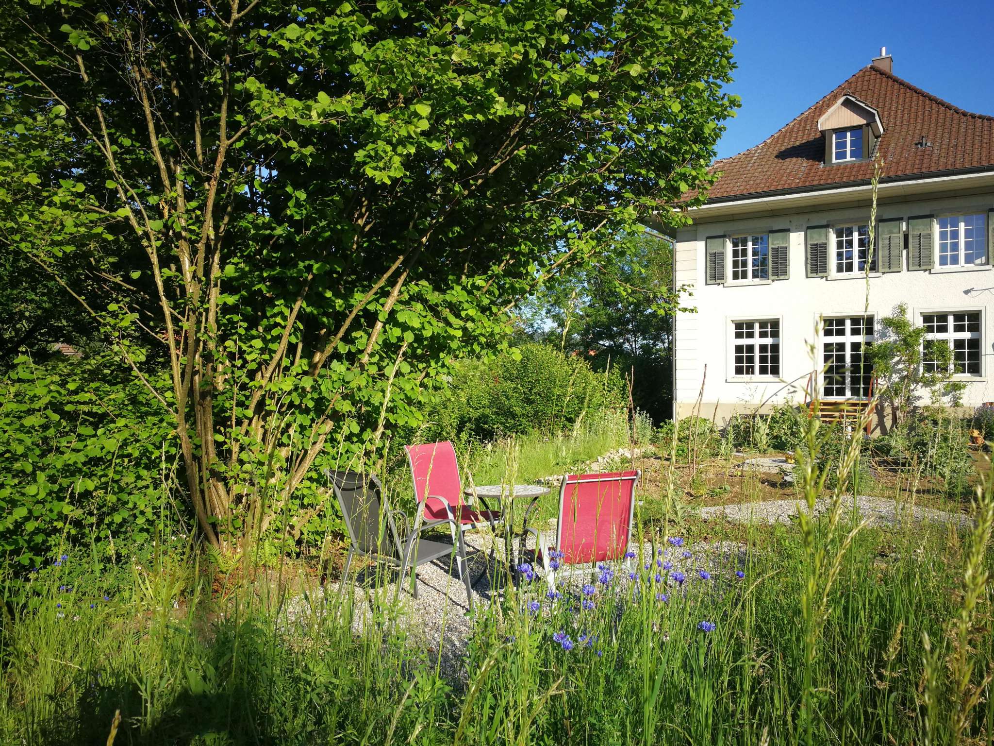 - diverse Gartensitzplätze und schmaler Balkon (Ost) zur Mitbenutzung