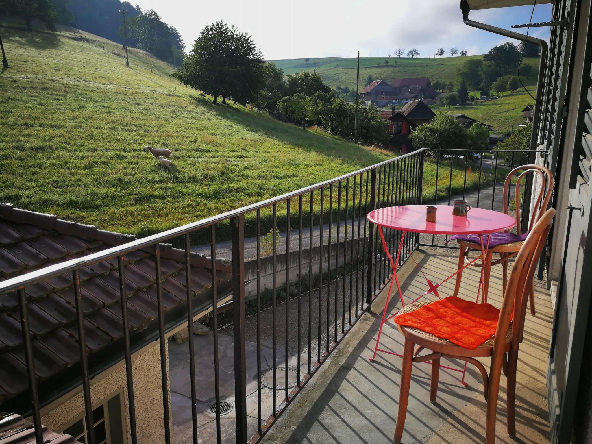 Die ehemalige Lehrerinnen-Wohnung als Ferienwohnung mit Sonne von morgens bis abends. Das Schulhaus Wyssbach wurde 1921-22 gebaut und bis 1980 als Schule genutzt. Über zwei grossen Klassenzimmern befinden sich zwei Wohnungen. Die grössere war dem Lehrer vorbehalten, die kleinere der Lehrerin. Dafür liegt die Lehrerinnenwohnung auf der Sonnenseite des Hauses über dem grossen Garten. Typisch für diese Zeit: Die alleinstehende Lehrerin unterrichtete an der Unterstufe die 1. - 4. Klasse, der Lehrer an der Oberstufe die 5. - 9. Klasse. Vom Lehrer erwartete man, dass dieser mit seiner Familie im Haus wohnt.