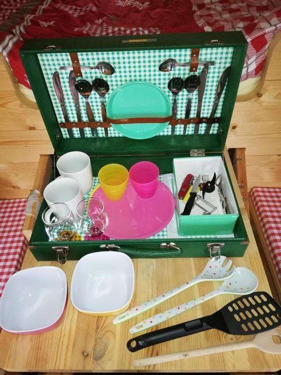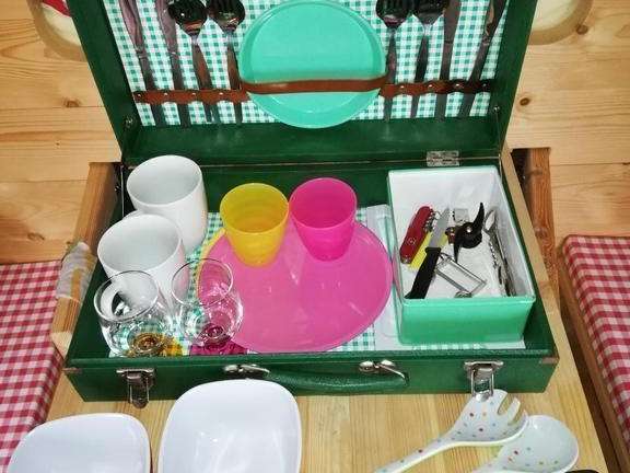 Sie schlafen in einem französischen Bett (2 Erwachsene), Kinder können auf den Schlafplätzen auf den Sitzbänken schlafen (nur 130cm lang!). Bett- und Frotteewäsche sind vorhanden, für Kinder müssen Schlafsäcke mitgenommen werden. Das gemütliche Wohnfass bietet eine ausziehbare Tischplatte mit zwei Sitzbänken an der Wand, Stauraum unter dem Bett und den Sitzbänken, Strom (1 Lampe, 1 Steckdose, 1 kleiner Elektro-Ofen zum Heizen falls es kalt wird), Campingausrüstung (ein Campingkocher mit 2 Platten, Campinggeschirr, kleiner Kugel-Grill sowie 2 Tische und Stühle) ein WC mit Lavabo, sowie eine einfache Dusche mit separatem Eingang auf Bauernhof, ein Kühlschrank mit Gefrierfach und ein gemütlicher Sitzplatz mit Cheminée mit Holz zum Grillieren.