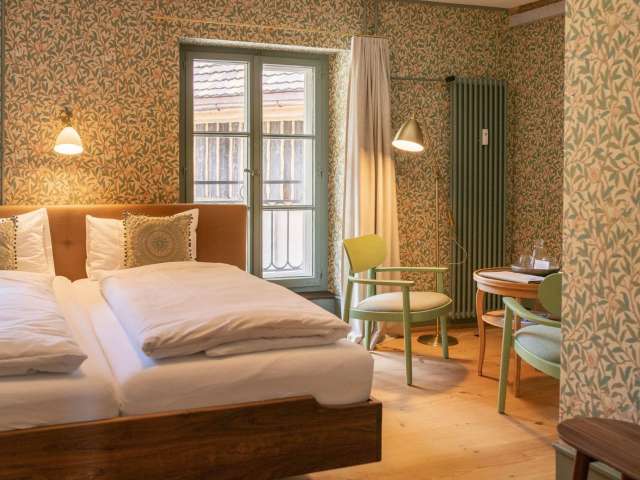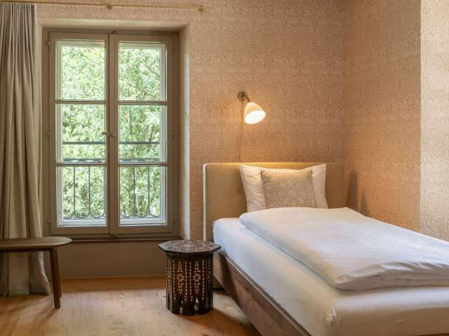 Die 250-jährige Villa Sonnenberg war einst Landgut, Familiensitz und Künstlerresidenz. Kürzlich liebevoll saniert, bietet sie vier individuell eingerichtete BnB-Zimmer mit grosszügigen, privaten Badezimmern. In ruhiger Lage, umgeben von einem idyllischen Garten, vereint das Haus historischen Charme und zeitgemässes Design. Ein saisonales Frühstück wird frisch zubereitet. Die inspirierende Atmosphäre und Gastkünstler:innen aus aller Welt machen die Villa Sonnenberg zu einem besonderen Ort.