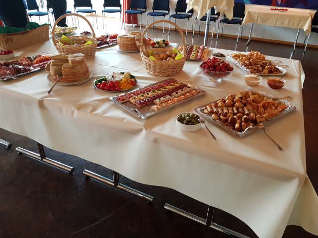 -Konfirmation, Taufe: Während die Familie die Feier in der Kirche geniesst - bereitet das Kochtöpfli-Team in der Zwischenzeit das Buffet vor.