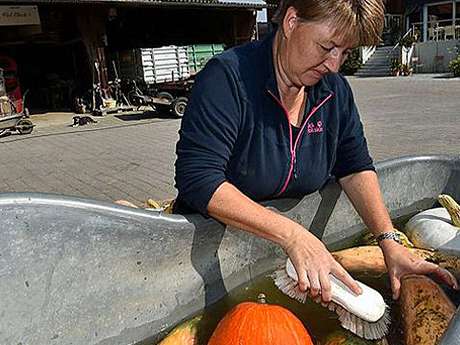 Muscade de Provence, Tetsukabuto, Pepita, Bleu de Hongrie oder Türkenturban: Das sind keine Adelsnamen, sondern Kürbissorten. Schön herausgeputzt in herbstlichem Farbenzauber, warten die Beerenfrüchte, die ursprünglich aus Mittelamerika stammen, auf Abnehmer. Sie werden von Therese Waldmann angepflanzt und direkt ab ihrem Bauernhof an der Aarwanger Jurastrasse verkauft. Unter den vierzig Sorten befinden sich viele beliebte Kürbisse wie der Potimarron, der orange Knirps.