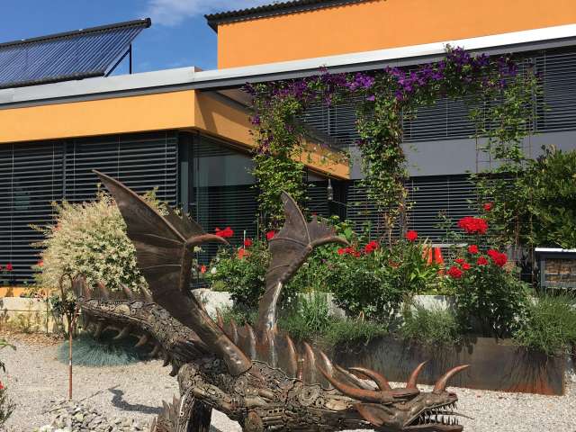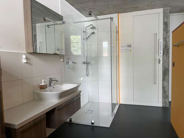 Ein Autoparkplatz sowie eine Ladestadion für Elektroautos befinden sich direkt beim Haus. Einstellmöglichkeiten für Fahrräder sind ebenfalls vorhanden.