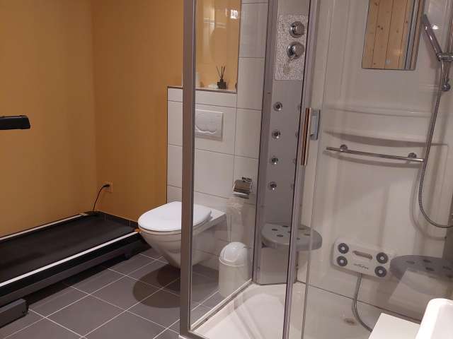 Geniessen Sie erholsame Tage im liebevoll eingerichteten, 36 m² grossen Zimmer mit eigenem Hauseingang und Parkplatz. Hier erwartet Sie eine gemütliche Atmosphäre, die zum Entspannen und Verweilen einlädt.