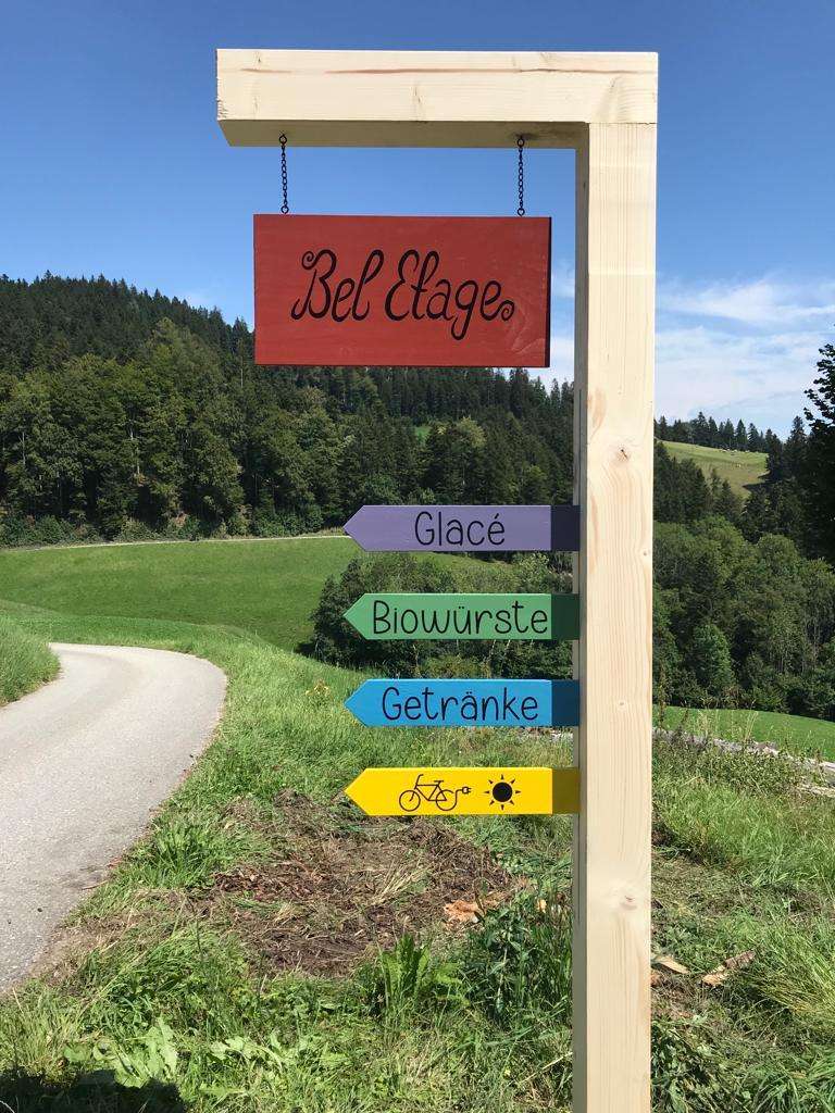 Zwischen Biglen und Signau erwartet dich in der Gemeinde Oberthal die Aussichtsterrasse BEL ETAGE. Sie liegt direkt an der Gotthelf - Route Nummer 699.