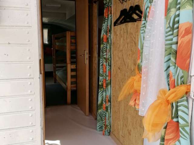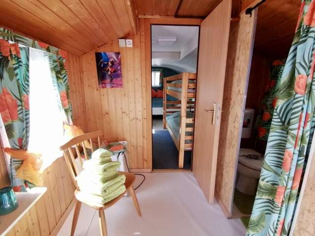 Übernachten Sie in einem unserer drei Wohnwagen mit Doppelbett, Kajütenbett, Mini-Kühlschrank, TV und eigenem Bad inkl. Dusche (bis zu 5 Personen pro Wohnwagen) oder in einem unserer drei herzigen Abteilen mit Gemeinschaftsbad (bis zu 2 Personen pro Abteil) und geniessen Sie am folgenden Morgen ein feines Frühstück.