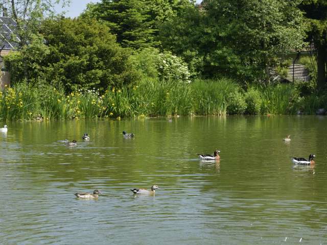 Die Vielfalt der unterschiedlichen Enten und Gänse, die in diesem eher kleinen Weiher leben, ist erstaunlich.