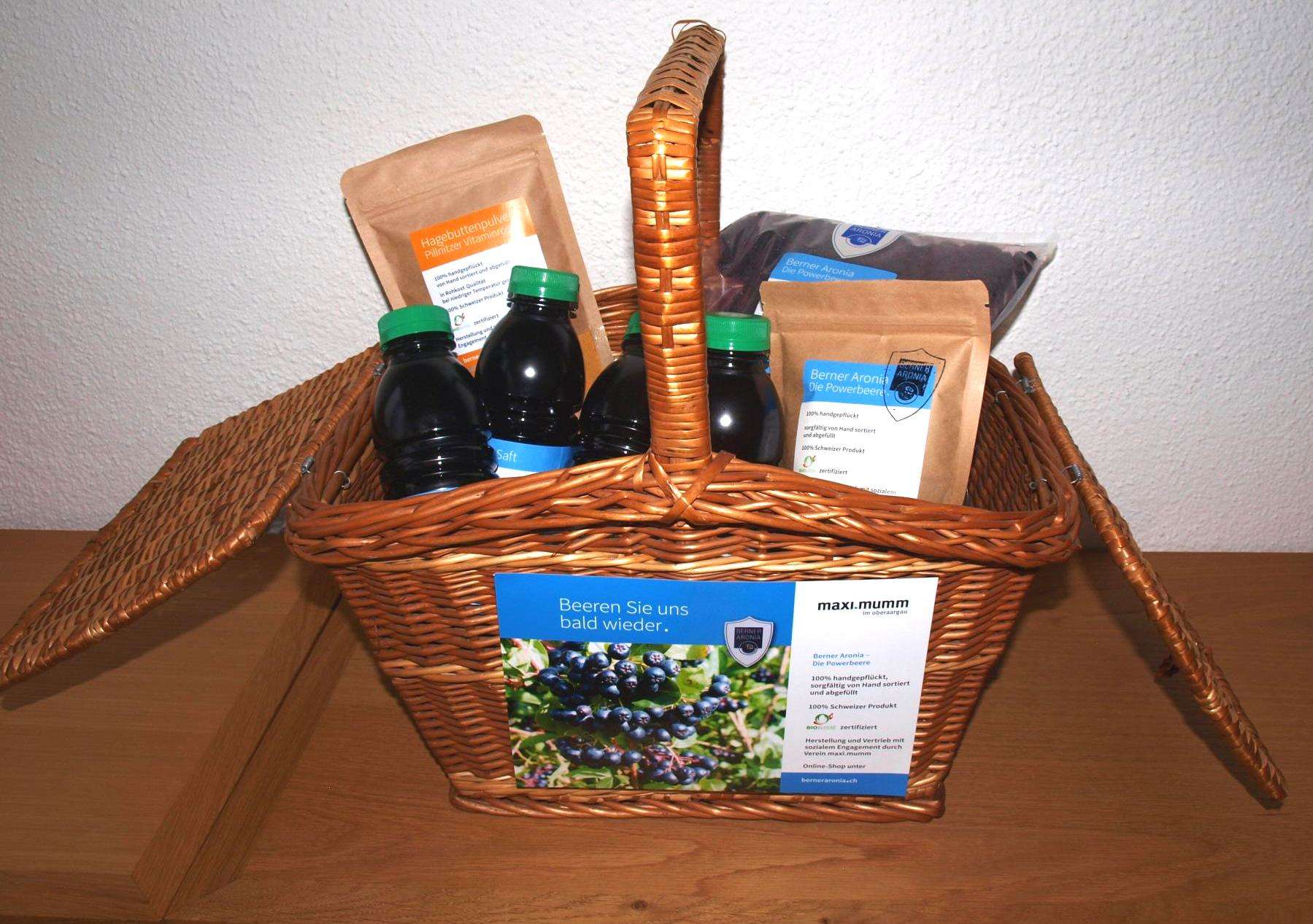 Aroniabeeren sind wegen Ihres überaus reichen Polyphenol Antioxidantien-Gehalts als Nahrungsergänzung sehr beliebt. Der Verein maxi.mumm produziert mit der Marke «Berner Aronia» getrocknete BIO Berner Aronia Beeren, Granulat und Direktsaft, sowie das Vitamin C reiche Hagebuttenpulver.