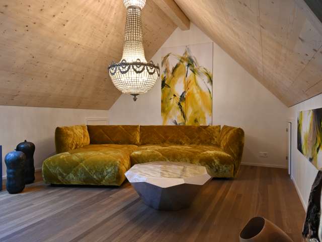 Für längere Aufenthalte steht eine stilvolle 5 ½ Zimmer Ferienwohnung mit 170 m2 Wohnfläche zur Verfügung. Mit ihrem hellen Wohn- und Essbereich, einem gemütlichen Wintergarten, zwei separaten Schlafräumen, jeweils mit eigenem grossem Bad und Ankleide sowie Garten und Sitzplatz bietet sie hohen Wohnkomfort in ruhiger Lage.
