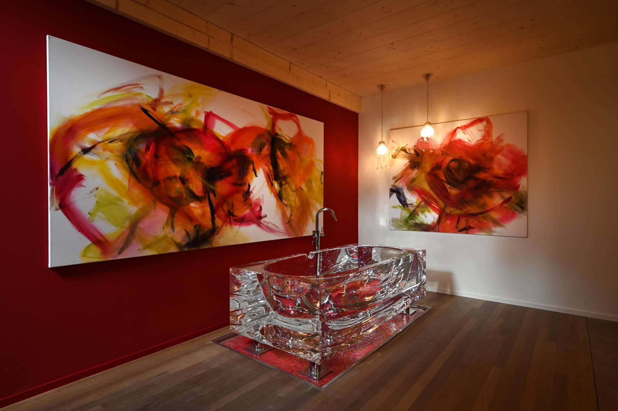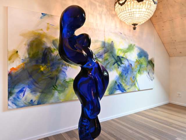 Kunst ist das Herzstück des Roggegratbads. In der hauseigenen BLUE-art Galerie, die nur auf Voranmeldung besucht werden kann, sind Werke von Brigitte Buck Litscher und Heiko Schütz ausgestellt – ergänzt durch Objekte regionaler Kunstschaffender.