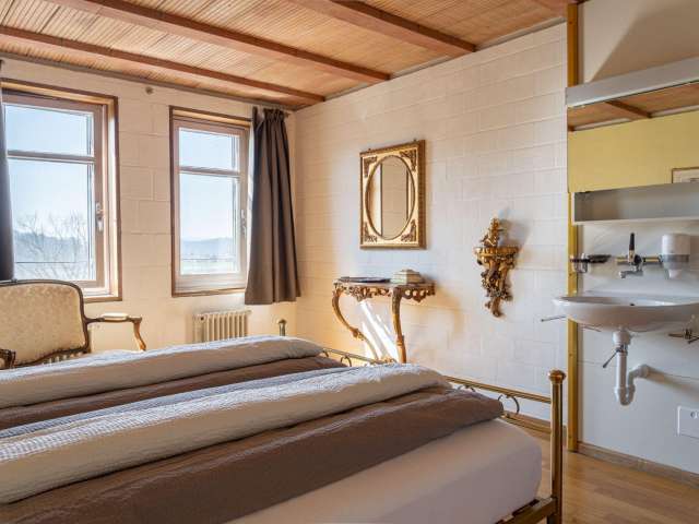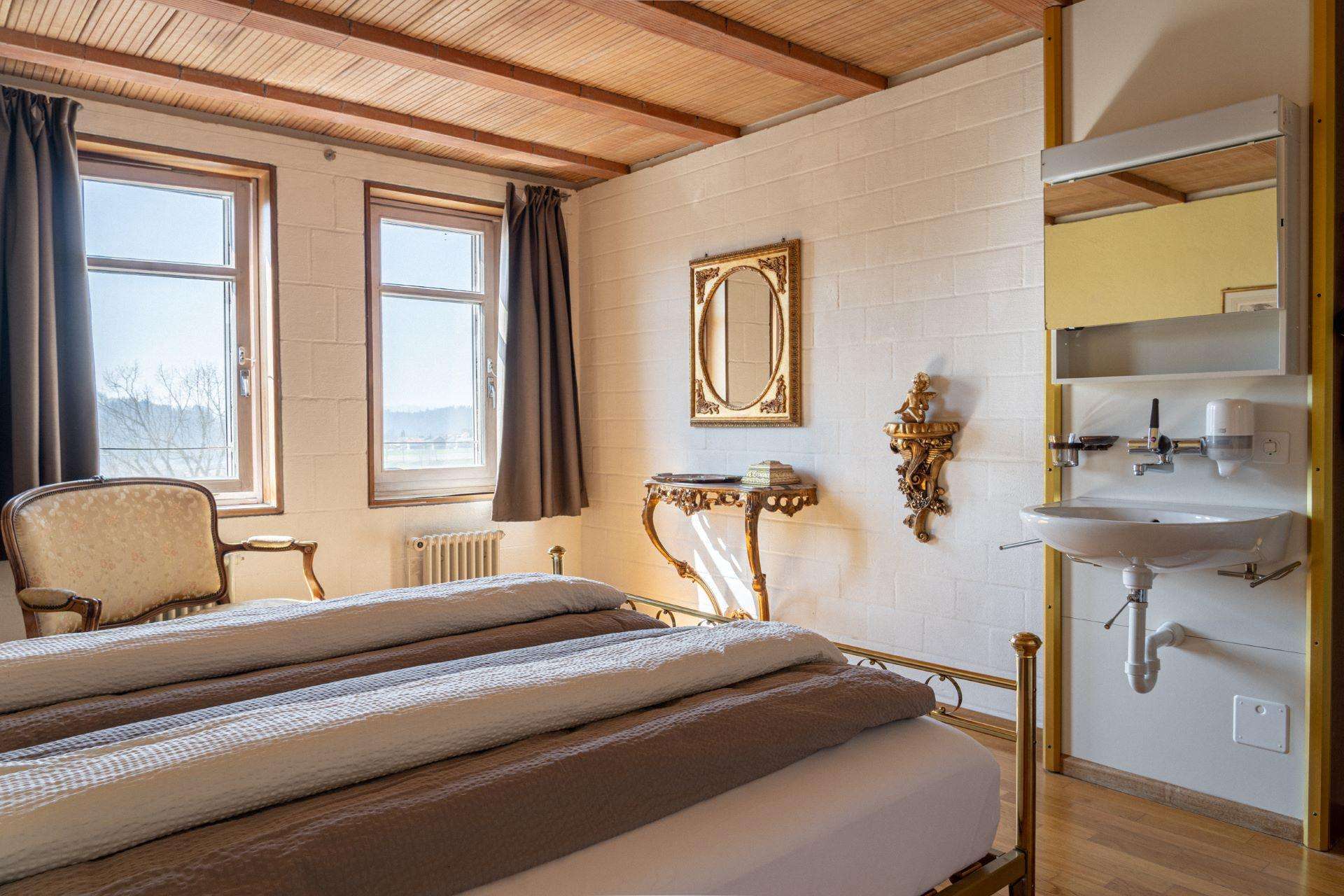 • 8 Zimmer mit insgesamt 20 Betten. Die Betten liegen im Turm des Schlosses Sumiswald und sind alle liebevoll eingerichtet.