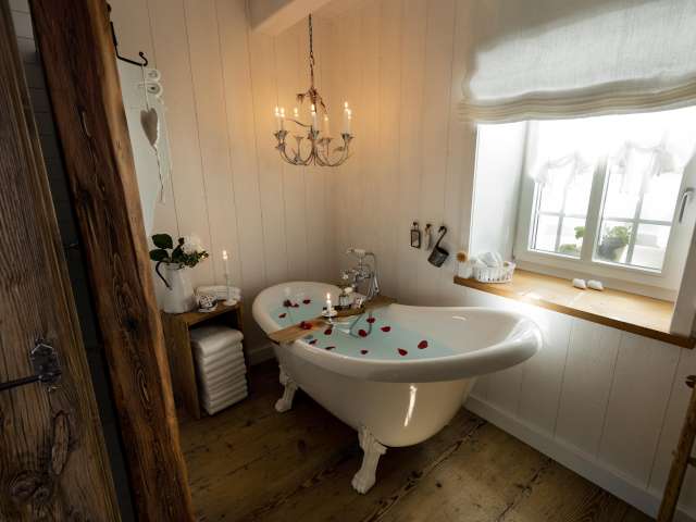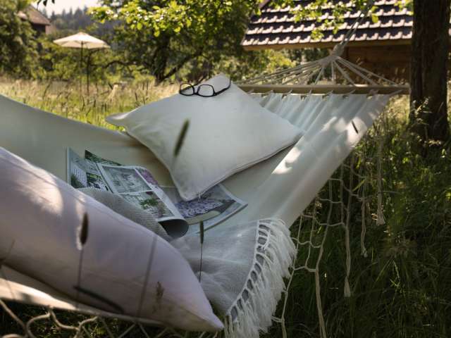 Das Angebot schliesst zwei freistehende Gästehäuser ein, welche sich in Sichtweite voneinander inmitten der Ökowiese in der Hofstatt befinden. Die alten Obstbäume ringsum spenden Schatten und strahlen Ruhe und Behaglichkeit aus. Liegestühle und eine Grillstelle laden zum Verweilen und Geniessen ein. Das «Weideschürli» diente früher als Unterschlupf für Rinder und Pferde. Es bietet mit seinen 15 m2 in restaurierter, optimal ausgenutzter Wohnform Platz für ein oder zwei Personen. Es wird für Kurzaufenthalte empfohlen. Das «Ofehüsli», zu früheren Zeiten als Brotbackhaus genutzt, ist ein altes Sandsteingebäude mit zwei Etagen, das für zwei bis vier Personen schmuck eingerichtet ist und sich für längere Aufenthalte eignet. Beide Häuser sind mit WC/Bad/Dusche ausgestattet. Das Frühstück wird morgens direkt ins Gästehaus gebracht und kann dort oder bei schönem Wetter draussen vor dem Häuschen genossen werden. Die Gäste werden dabei mit frisch gebackenem Brot, Zopf und anderen hofeigenen und regionalen Produkten verwöhnt. Die Gästehäuser stehen von März bis November zur Verfügung. Belegungskalender und Buchungsformular finden Sie auf der Website. Die Inneneinrichtung der Häuser ist mit viel Sorgfalt, antiken Gegenständen und auserlesenen Dekoartikeln ausgestattet. Die Gästehäuser sind ausschliesslich für erwachsene Gäste geeignet und daher nicht für Aufenthalte mit Kindern ausgelegt.