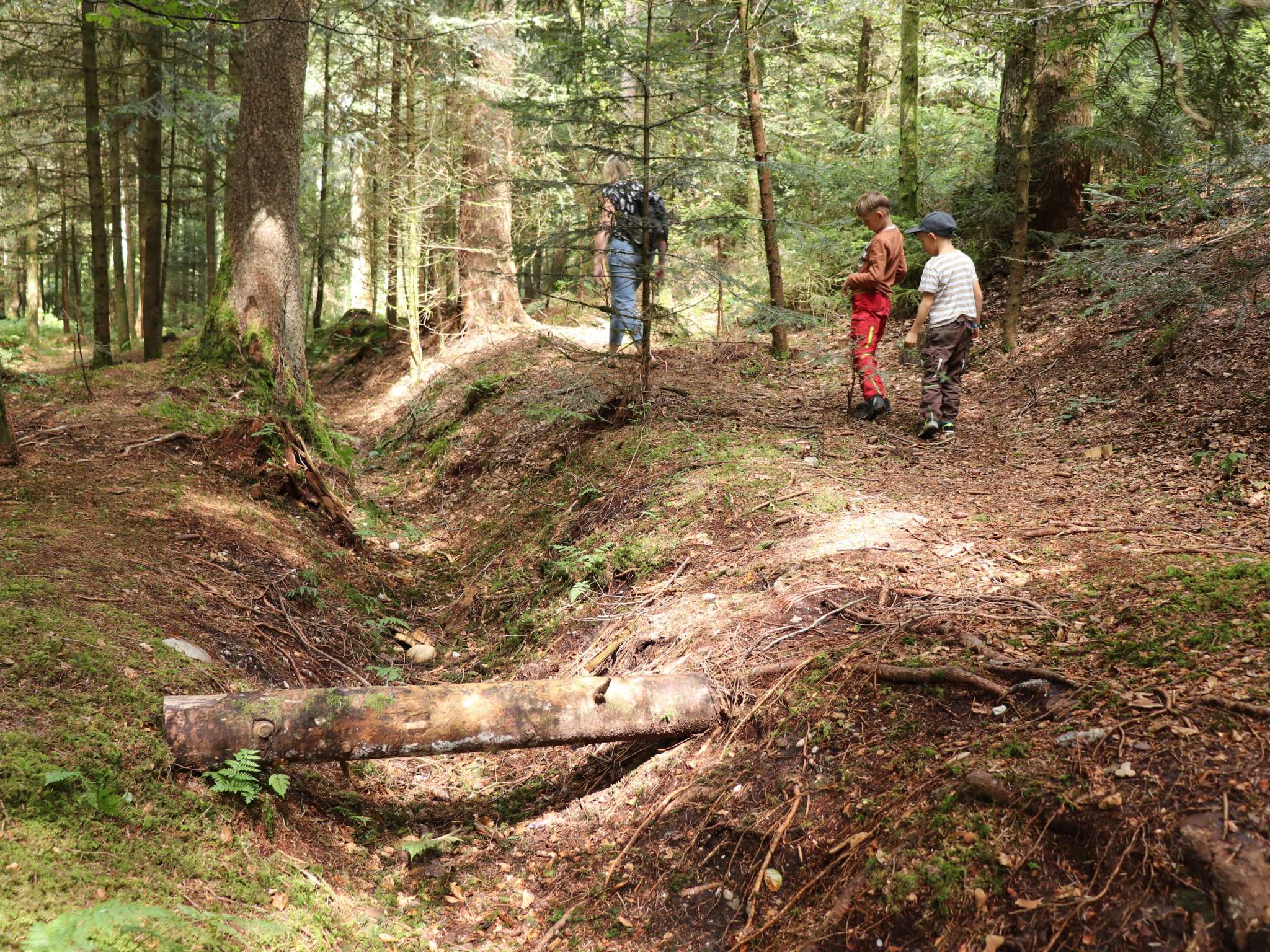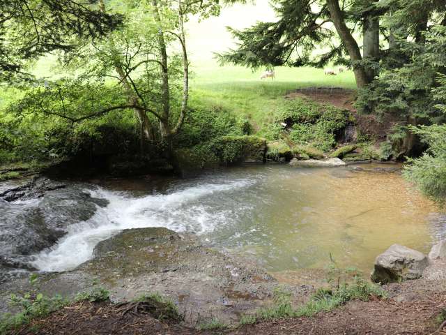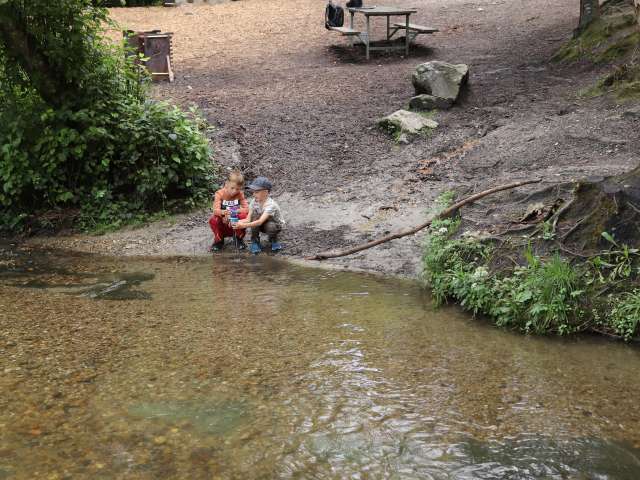 «Ich beobachte gerne, ob ich Fische sehe, und versuche, sie zu fangen», sagt Dylan (6). «Meist bleibt es beim Beobachten», sagt Sarah, seine Mutter, und schmunzelt. Mit ihrer Familie geht sie gerne zur Buebeglungge im Huttwilwald. «Besonders an heissen Sommertagen, wenn es hier angenehm kühl bleibt - und man in der tiefen Mulde im Bach auch mal ein Bad nehmen kann.» Dort springt Jeff (7) gerne ins Wasser. Doch «Buebeglungge», der offizielle Name, untertreibt: «Auch Erwachsene können hier bequem ganz eintauchen», sagt Sarah.