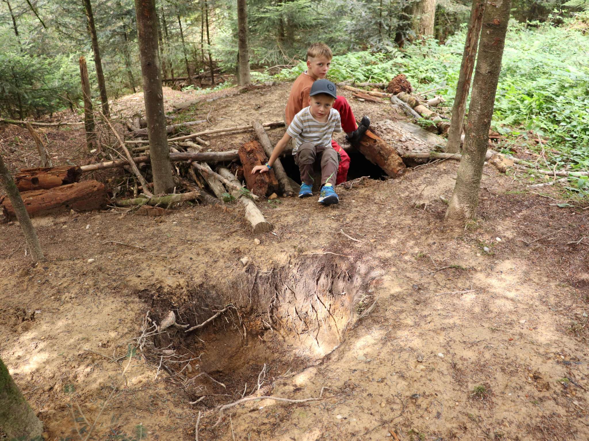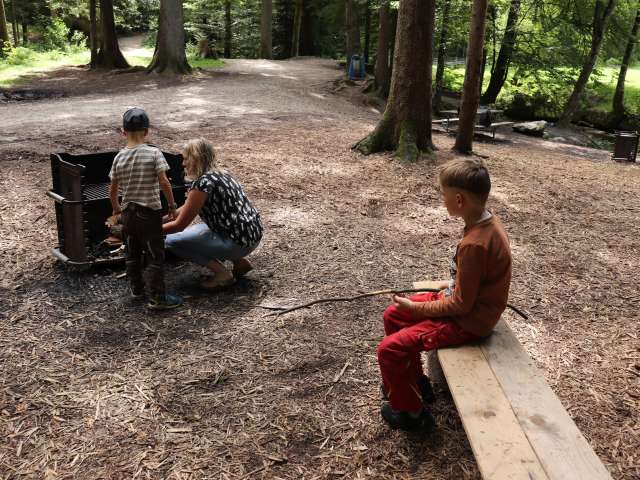 Zudem lässt sich im Wald viel erleben. Dylan zeigt stolz die Baumhütte, die er mit seinem Bruder gebaut hat. Trockene Gräben lassen sich auf kleinen Baumstämmen balancierend überqueren und ersetzen sogar einen Pumptrack, wie Mutter Sarah festhält. Bänke, Tisch und Grill laden zum Verweilen ein, für Brennholz sorgt regelmässig die Herdgemeinde Huttwil.
