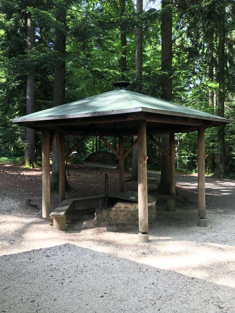 Die Waldhütte bietet Platz für 24 Personen - unter dem Vordach für ca. 16 Personen. Sie verfügt über fliessend kaltes Wasser und WC. Auf dem Platz vor der Hütte hat es eine gedeckte Brätlistelle, Sitzgelegenheit und einen schönen Brunnen. Innenraum, WC und Brennholz stehen bei Reservationen zur Verfügung.