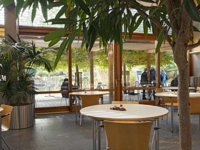 Das Café Lärche ist ein lichtdurchflutetes und helles Selbstbedienungsrestaurant, welches Bewohnerinnen und Bewohnern, ihren Angehörigen, den Mitarbeitenden und auswärtigen Gästen verpflegt. Täglich frische, gutbürgerliche Menüs, ein kaltes und warmes Buffet sowie Süsses aus der Bäckerei erwartet Sie bei Ihrem Besuch. Im gemütlichen Café Lärche, mit Blick auf den idyllischen Weiher, werden Sie sich wohlfühlen und ruhige und erholsame Momente in ländlicher Umgebung geniessen.