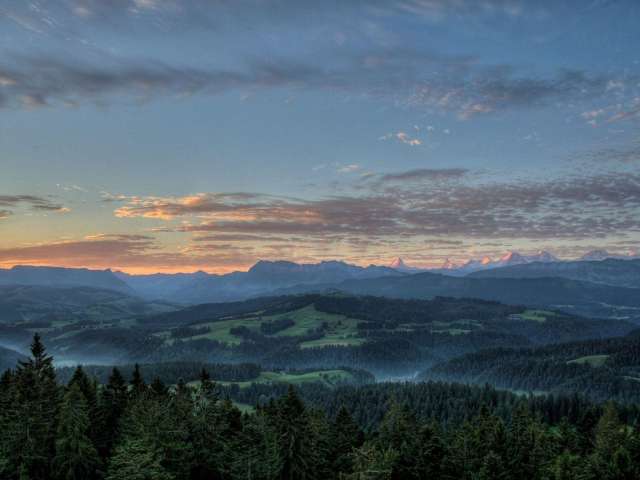 Der 42 Meter hohe Aussichtsturm Chuderhüsi ist aus Weisstannen-Holz gebaut und gehört zu den höchsten Holztürmen der Schweiz.