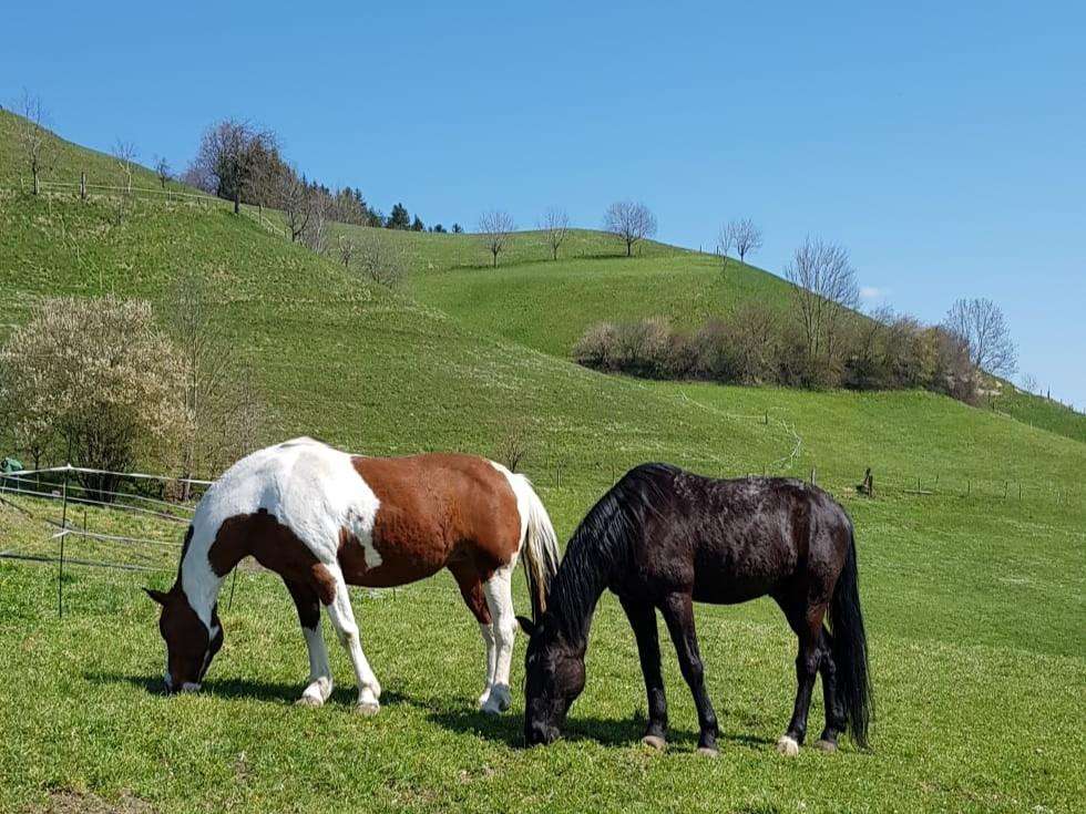 Eine aktive und unternehmungslustige Familie mit ihren Pferden, Kaninchen, Katzen und Hündin.