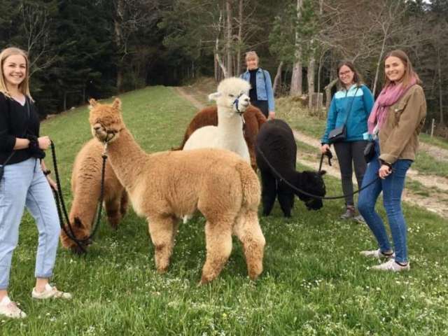 Dann buchen Sie einen Alpaka-Bummel und spazieren mit einem Alpaka an Ihrer Seite durch den Wald und über Feldwege auf der Moosegg.