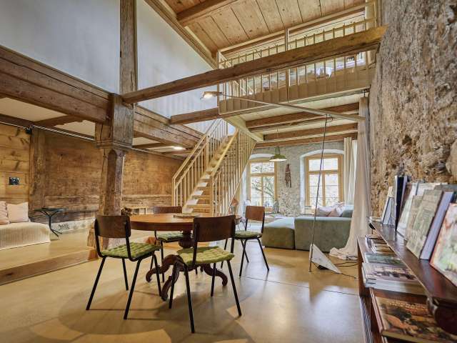 Grosszügiges Loft in denkmalgeschützter 300 Jahre alten Mühle. Das Loft bietet Platz für 4 Personen, einen eigenen Eingang & Garten.