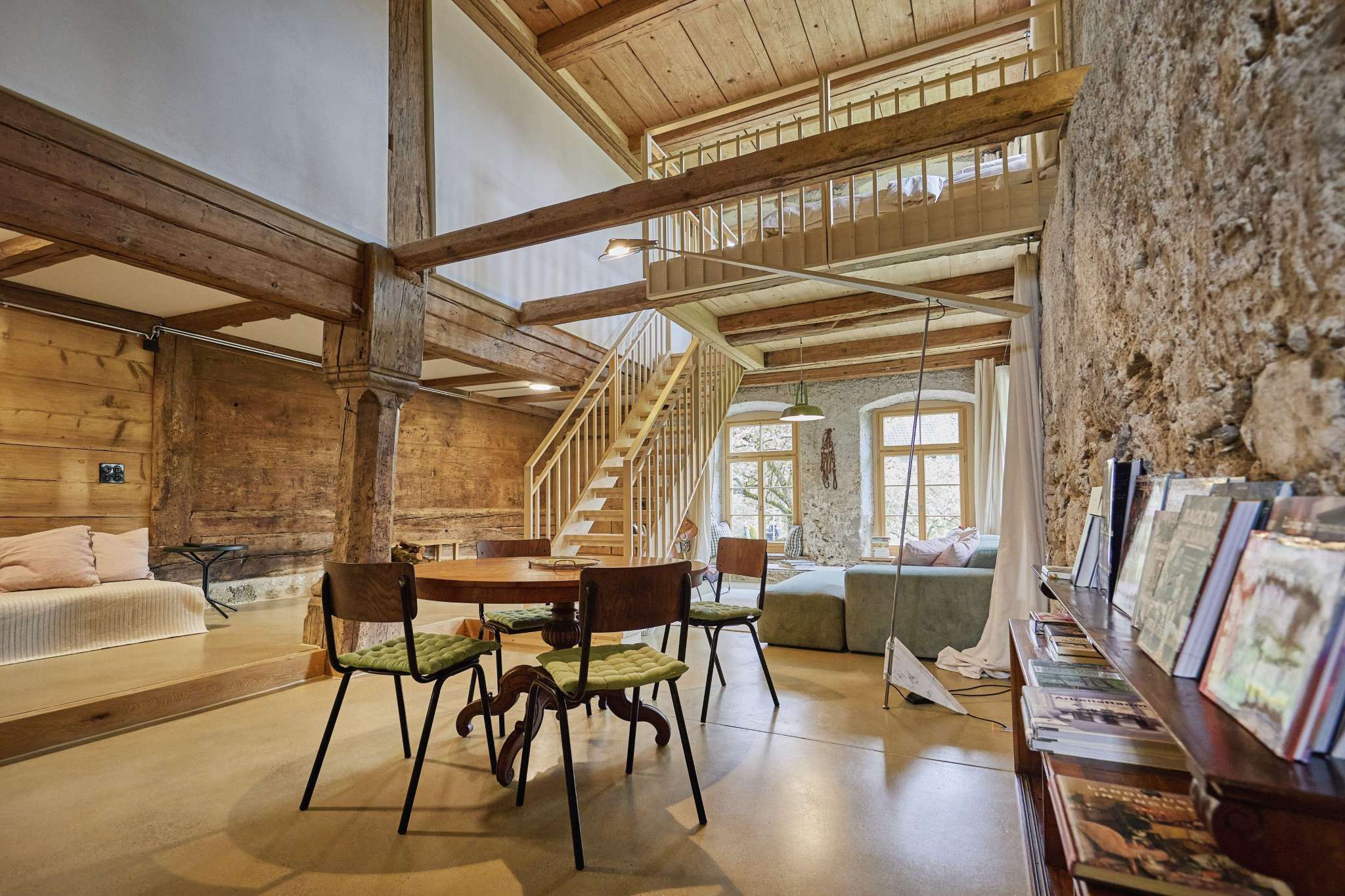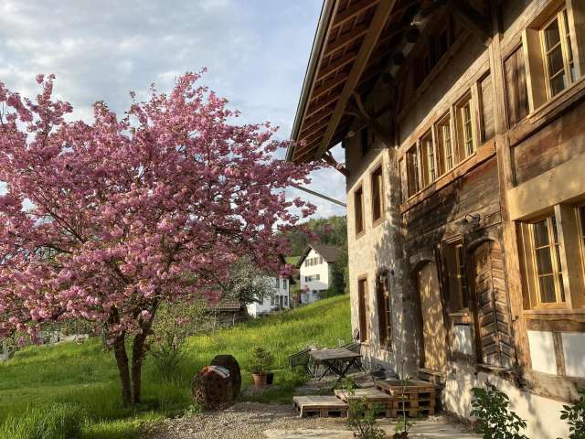 Übernachten Sie in unserer grosszügigen Loft-Ferienwohnung in der Alten Mühle Schalchen. Der stilvoll ausgebaute ehemalige Mühleraum verbindet Geschichte mit modernem Komfort und viel Charme. Hohe Räume und liebevolle Details schaffen eine besondere Atmosphäre. Die Wohnung bietet Platz für bis zu vier Personen, verfügt über einen eigenen Eingang und einen privaten Garten. Ideal als erholsamer Zwischenhalt auf der Herzroute oder für entspannte Tage im Grünen.