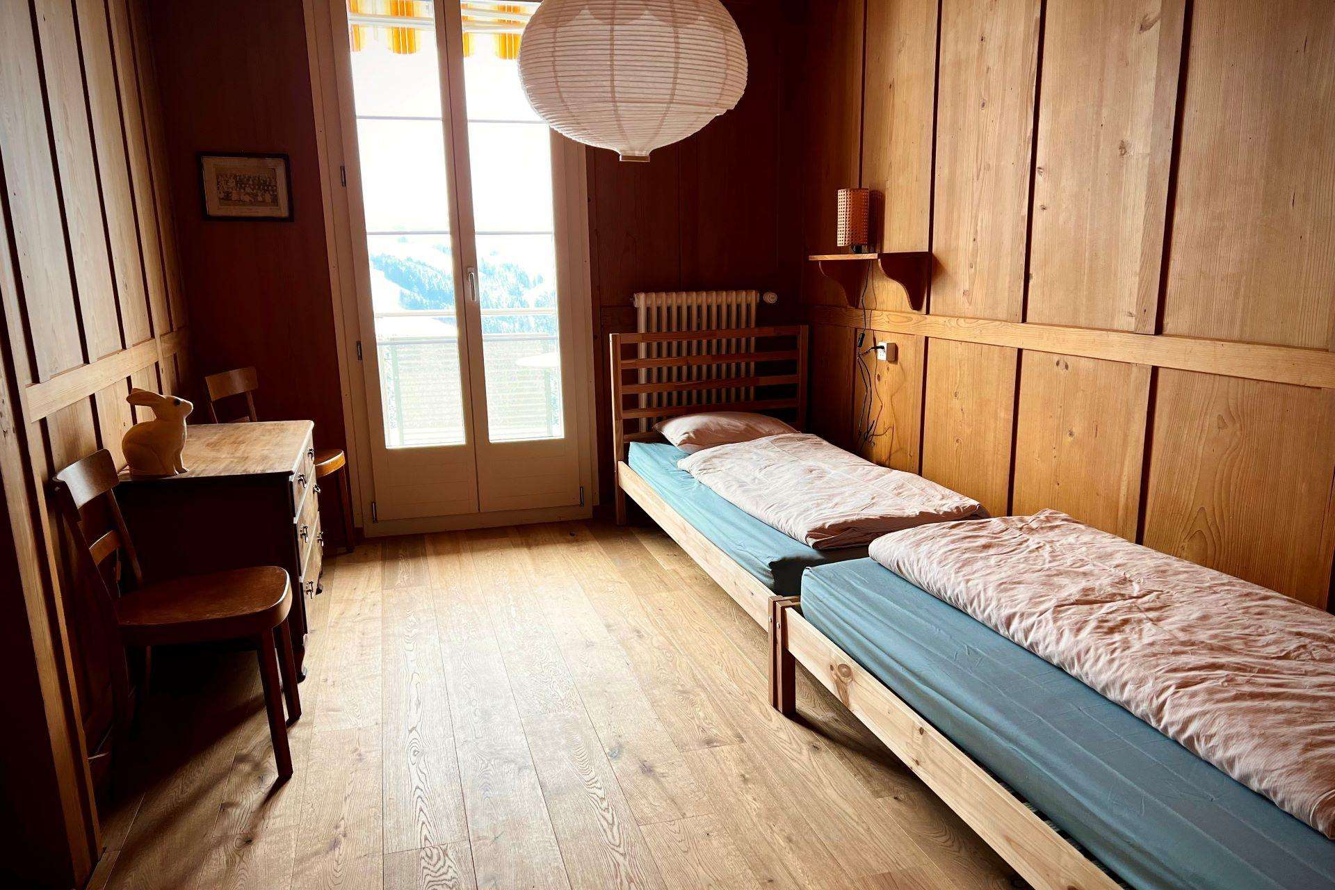 Die Ferienwohnung ist für 1 – 4 Personen geeignet und befindet sich im 1. Stock des ehemaligen Schulhauses. Die Wohnung verfügt über einen grosszügigen Grundriss mit Wohnzimmer, Balkon, gut eingerichteter Küche, zwei Schlafzimmer, eines mit Doppelbett und eines mit zwei Einzelbetten, sowie einem Badezimmer. Haustiere sind nicht erlaubt. Details und Buchungsmöglichkeiten finden Sie auf der Website.