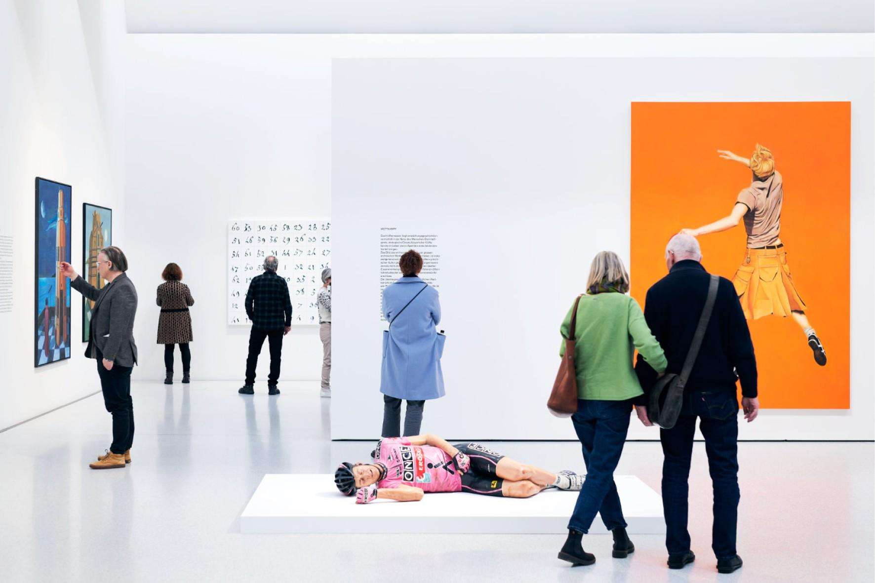 Im Innenbereich erwarten Sie Ausstellungen moderner und zeitgenössischer Kunst, bei freiem Eintritt und ganz unkompliziert auch in Radkleidung besuchbar. Überdachte Fahrradabstellplätze stehen zur Verfügung.