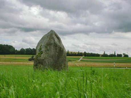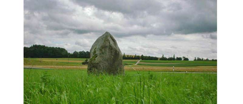 Der mannshohe Menhir von Attiswil steht mitten im Feld.
