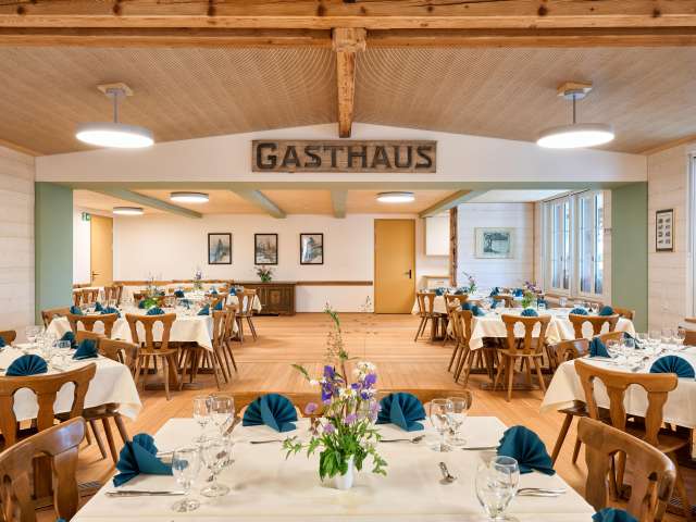 Für besondere Anlässe zu feiern mit Familie und Freunde haben Sie diverse Räume zur Wahl. Soll es etwas Kleineres im engen Rahmen sein, ist das Sääli (im 1. Stockwerk bis 26 Personen) die Ideale Wahl. Das Sääli ist im Sommer nur als Schlechtwetter alternative buchbar. Für grosse Anlässe, Gruppen und Carfahrten ist der grosse renovierte Saal die beste Variante. Die Gartenwirtschaft ist ebenfalls im Sommer für Gruppen und Anlässe verfügbar. Nehmen Sie noch heute Kontakt auf und lassen Sie sich inspirieren von den aktuellen Menüvorschlägen und Sie werden gerne beraten welcher Raum für Ihren Anlass die beste Wahl ist.