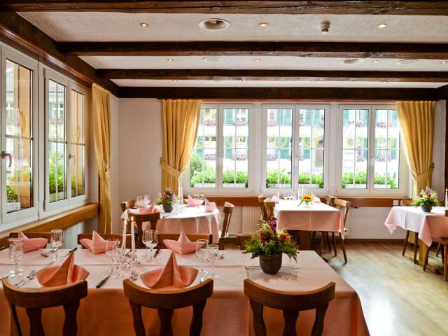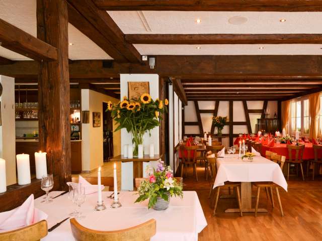 Essen und trinken im Restaurant Pizzeria des Gasthofs zum Wilden Mann in Aarwangen. Auf der Speisekarte stehen neben traditionellen und gutbürgerlichen Gerichten, Pizzas aus dem Holzofen sowie Pasta– und Risottogerichte. Eine gemütliche Gaststube bietet zusammen mit dem optisch durch den Eingangsbereich etwas abgetrennten Säli Platz für rund 80 Personen.