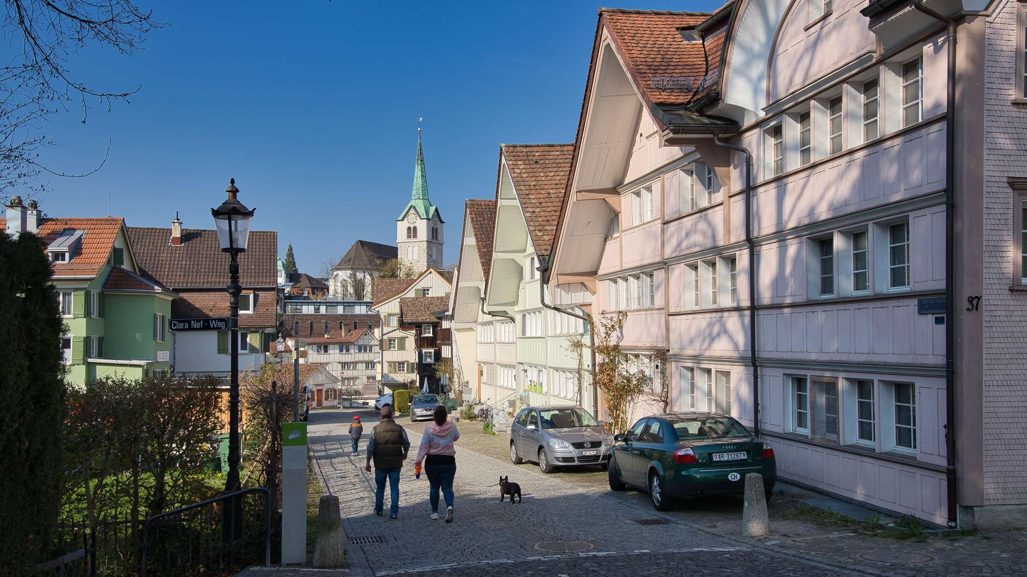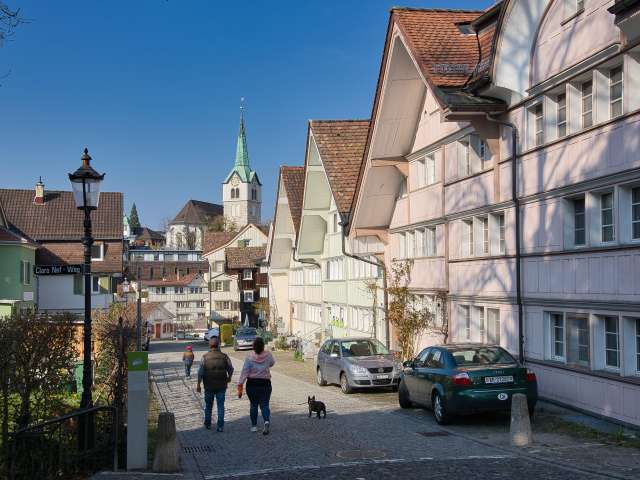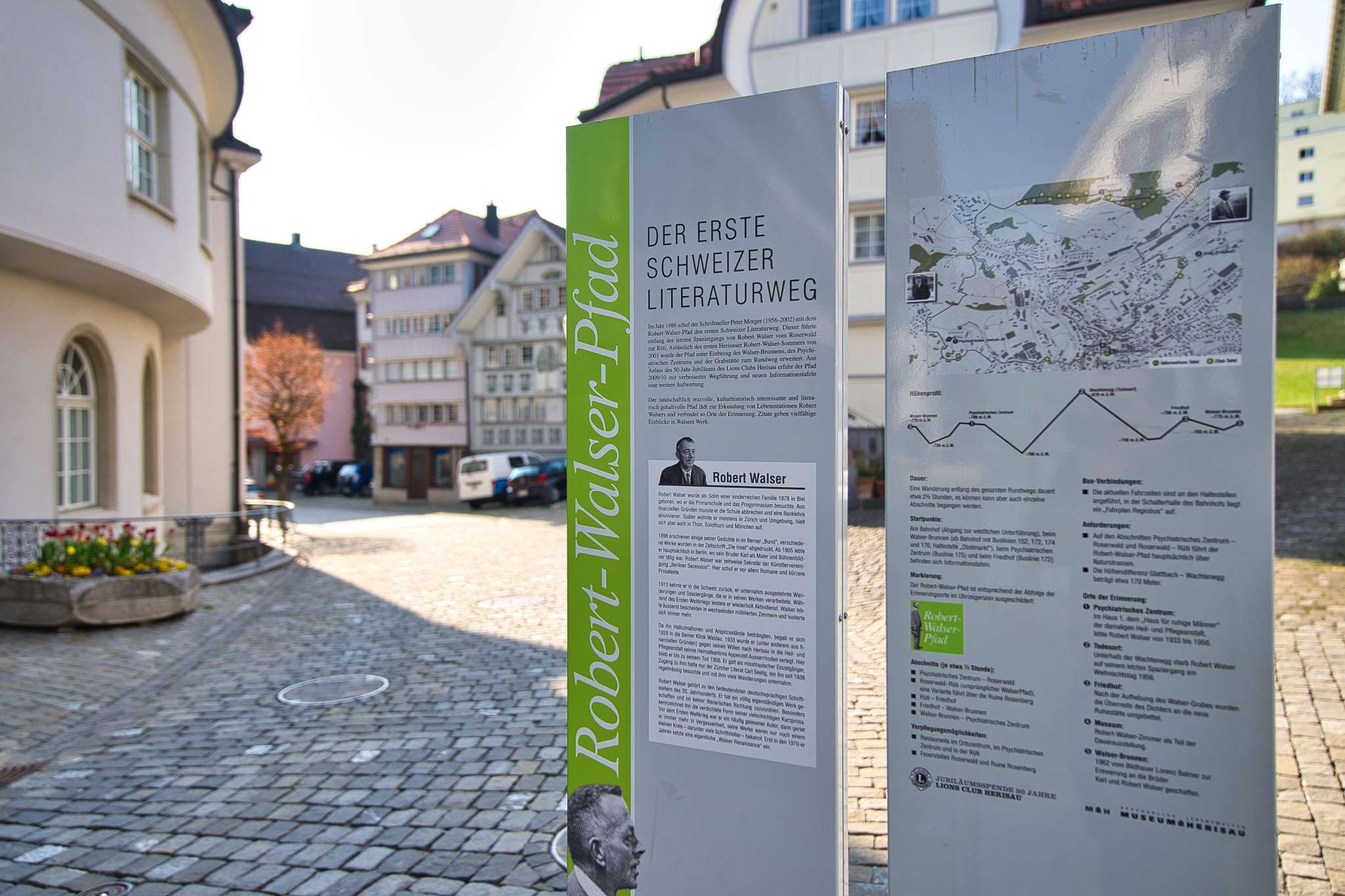 Im Ausserrhoder Hauptort mit seinen 15’700 Einwohnern angekommen, pedalen Sie vorbei an golden verzierten Fabrikantenhäusern, malerischen Gassen und kunstvoll bemalten Bauten. Wer sich etwas Zeit nimmt, entdeckt versteckte Perlen wie den Rosengarten und die verkehrsberuhigte Oberdorfstrasse mit ihren Appenzeller Häusern. Oder Sie nehmen einen Apéro beim Kinderparadies Sedel mit Blick auf Bodensee und Berge, schwimmen eine Runde im Freibad, lockern Ihre Muskeln im Wellnessbereich des Sportzentrums (geschlossen vom 20. Juli bis 2. August 2026) oder besuchen eine der vielen Veranstaltungen im Kulturzentrum Herisau. So vereint Herisau auf sympathische Weise den Charme eines Dorfes mit den Vorzügen einer Stadt. Sönd willkomm!