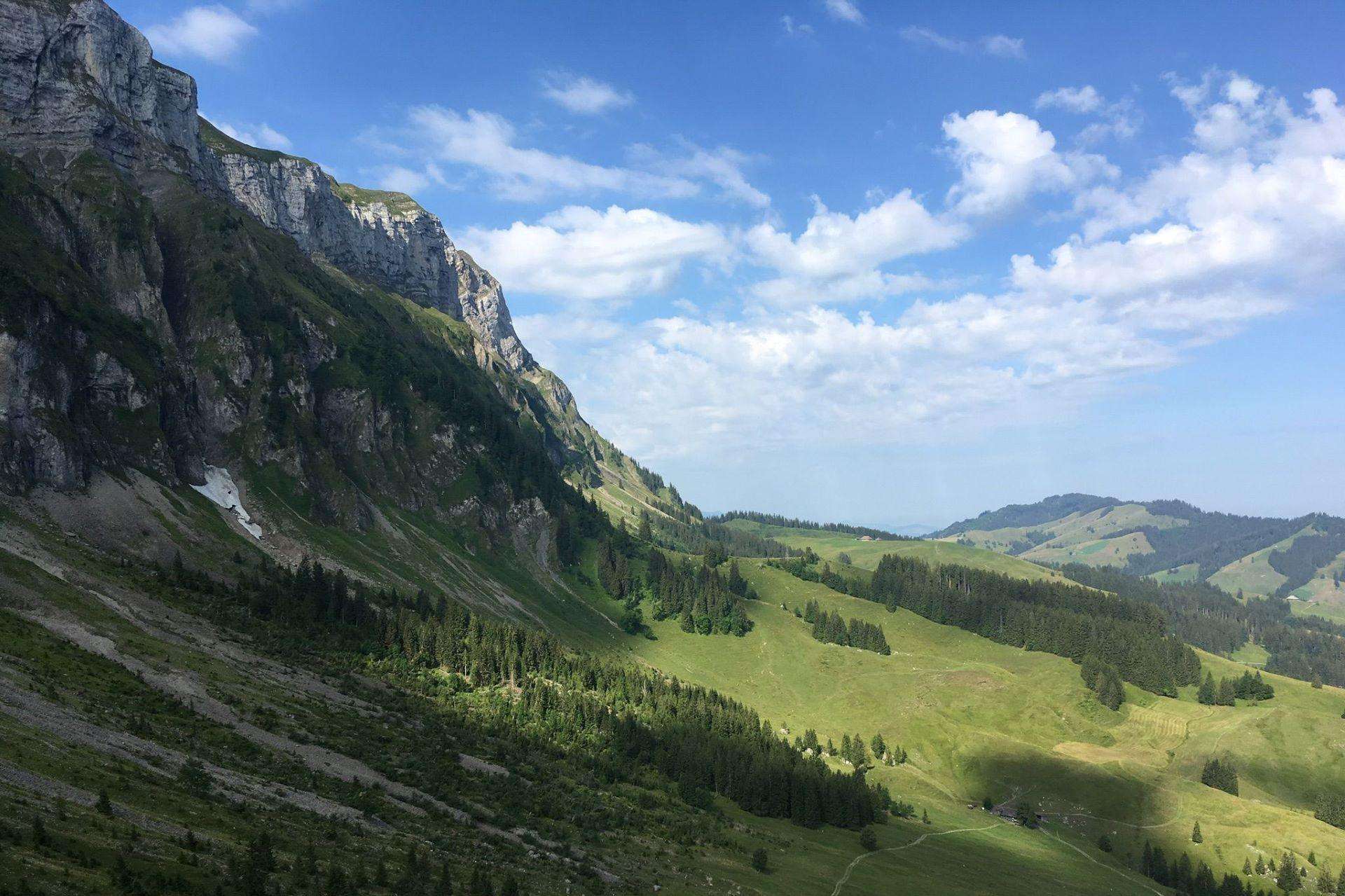 Wie ein mächtiges, sieben Kilometer langes Bollwerk steht die Bergkette des Hohgant in der Landschaft. Vom Emmental her mit seinem Schrattenkalkriegel gesehen schroff, abweisend und unzugänglich. Aber von der Oberlandseite her zeigt er seine grüne Schulter und seine zugänglichere Seite. Dominiert wird der höchste Punkt aber von der weiter westlich gelegenen, auffälligen Hochfläche der «Steinigi Matte». Das gesamte Gebiet am Hohgant befindet sich in einem 23 km2 grossen Naturschutzgebiet.