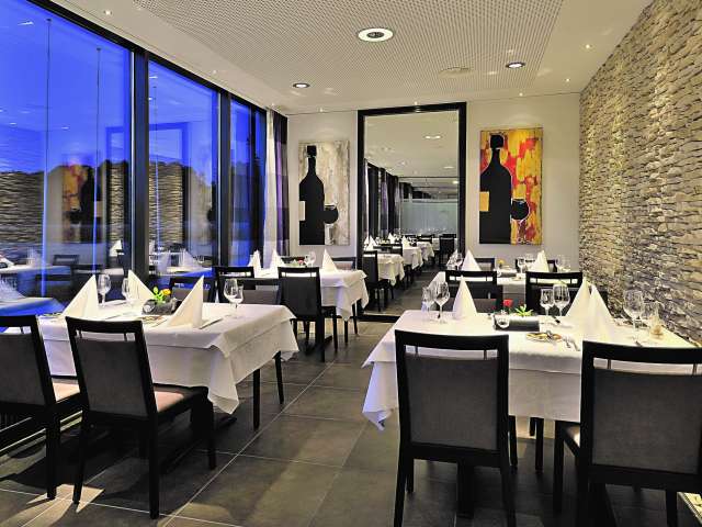 Das angenehme Ambiente im stilvollen Restaurant oder auf der gemütlichen Terrasse lädt zum Geniessen und Verweilen ein, serviert werden ausgesuchte à-la-carte-Gerichte, Saisonspezialitäten, Pizza- und Pasta-Angebote, Businesslunches und Tagesmenüs. Der Gastronomiebereich beinhaltet eine Gaststube (40 Plätze), ein gepflegtes à-la-carte-Restaurant mit über 80 Plätzen und das Gourmetstübli (30 Plätze). Zusätzlich können Bankette bis 220 Personen organisiert werden. Während den Wintermonaten überzeugt das Fondue Chalet mit einem aussergewöhnlichen Ambiente und verschiedenen, feinen Käsefondue-Variationen.