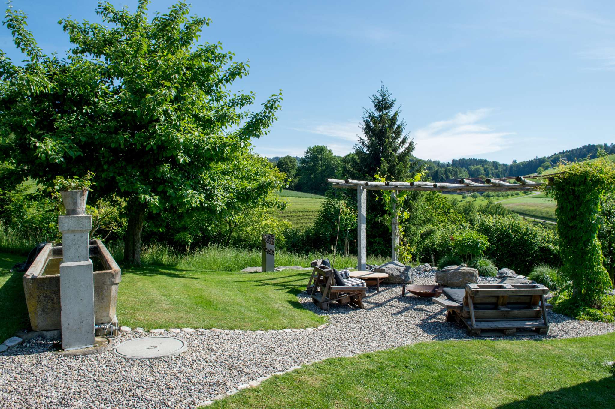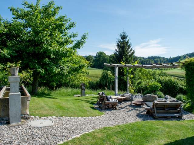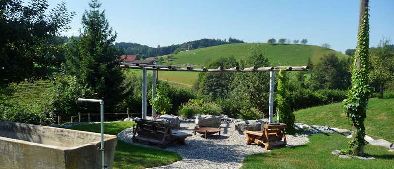 Die Zimmer sind grosszügig angelegt. Es stehen eine moderne Küche und neue Sanitäranlagen zur Verfügung. Die Aussenanlage mit Pergola, Sitzplatz, Spiel-und Liegewiese, Kneippbrunnen und Barfussweg bietet viel Abwechslung. Auch die Hofeigener Sauna steht den Gästen zur Verfügung.