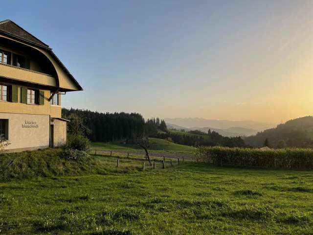 Just dort, wo die Strecke am schönsten ist, gelangt man zu einer einsamen Käserei. Diese liegt auf einem Hügelsporn zwischen Oberthal und Signau. Hier fabriziert die Familie Bähler den würzig feinen Le Gruyère AOP - was eine Seltenheit ist im Emmental. Das Haus bietet einen kleinen Laden. Tische und Liegestühle im Garten dürfen benutzt werden.