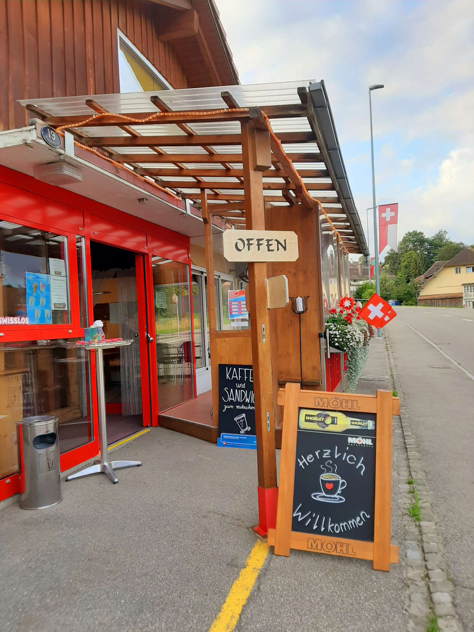 Ob mit Rucksack, Bike oder auf der Durchfahrt – machen Sie eine Pause und geniessen Sie einen feinen Kaffee aus unserer vielfältigen Auswahl. Dazu vielleicht ein Gipfeli, Sandwich oder Nussgipfel?