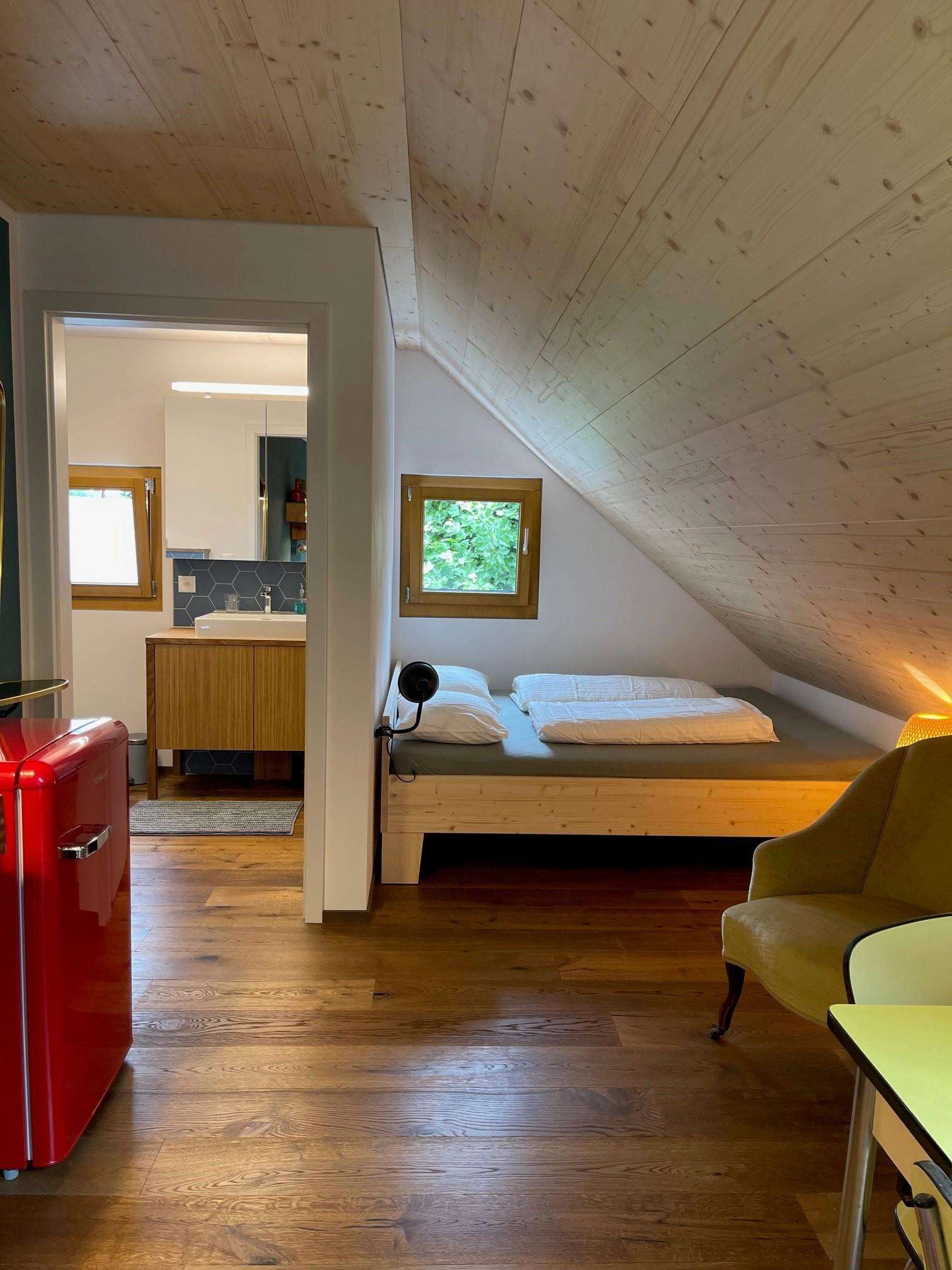 Im KalorienReich werden zwei gemütliche Bed-&-Breakfast-Zimmer im 2. Obergeschoss vermietet. Die Zimmer verfügen über ein Queen-Doppelbett, ein eigenes Bad mit Dusche, WLAN und inkludiertes Frühstück. Von Dienstag bis Samstag kann dieses im hauseigenen Café mit Bäckerei im Parterre genossen werden, sonntags und montags wird es auf dem Zimmer serviert. Für längere Aufenthalte stehen zudem eine kleine Kochnische mit Kochplatte, Backofen und Kühlschrank zur Verfügung.