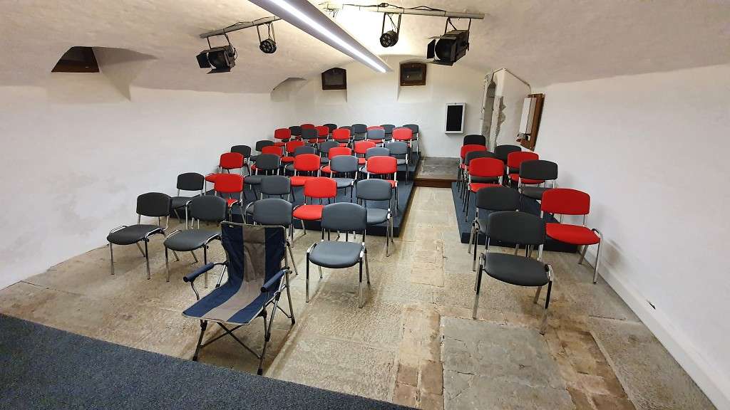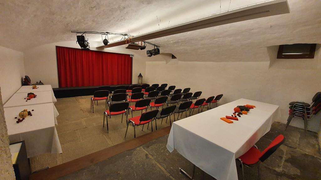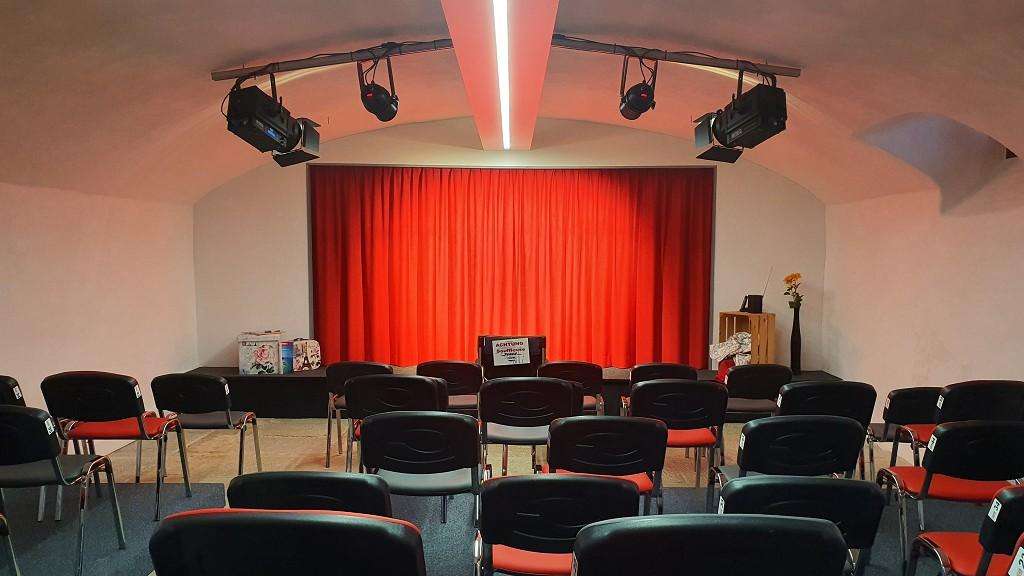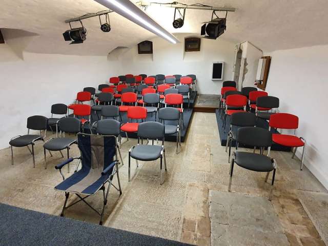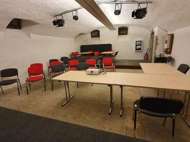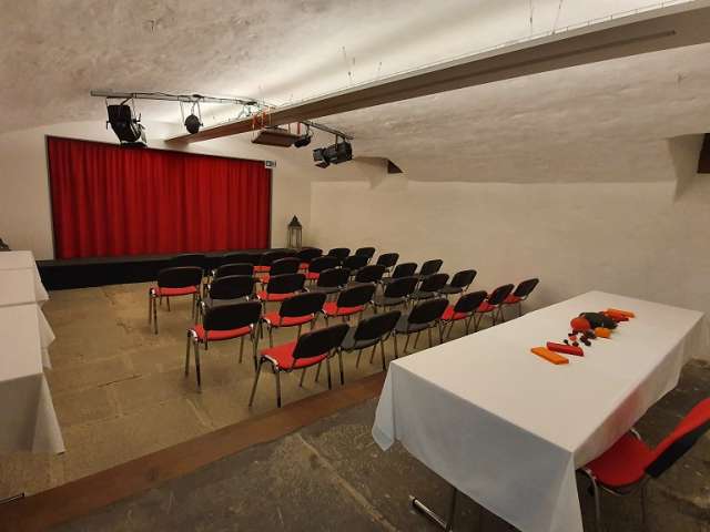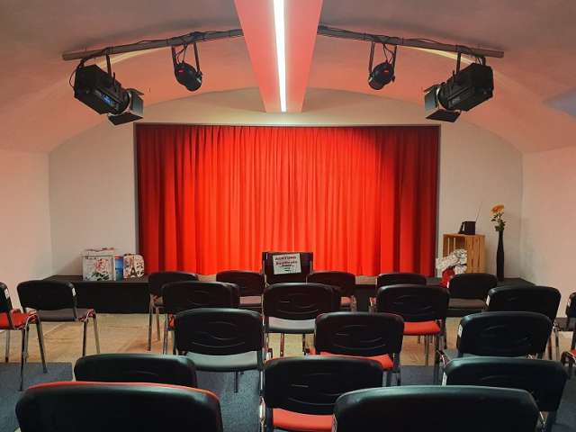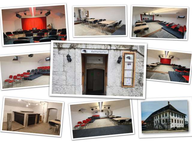 Der grössere Keller hat eine Bühne und entsprechende Infrastruktur, sowie Beamer und Leinwand. Genügend Parkplätze sind vorhanden.