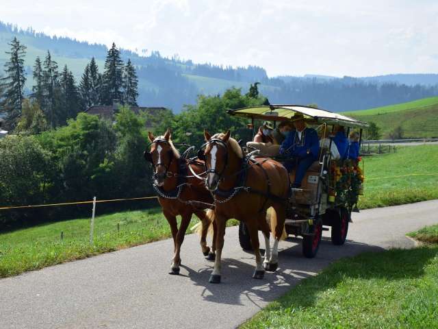 Mit einer Kutschenfahrt durchs Emmental wird der Weg zum Erlebnis. Die Kutsche holt Sie ab und führt Sie gemütlich und sicher zum Ziel. Ob zu einem Brätel- oder Picknickplatz, ob eine Hochzeits- oder Geburtstagsgesellschaft bewusst auf Hektik und Schnelligkeit verzichtet, ob Schülerinnen und Schüler auf ihrer Schulreise die gute alte Zeit erleben, ob Mitarbeiterinnen und Mitarbeiter beim gemächlichen Pferdetrott die herrliche Landschaft und Natur durch das Emmental geniessen und zum Gespräch finden - die Kutschenfahr wird zu einem ganz speziellen und unvergesslichen Erlebnis.