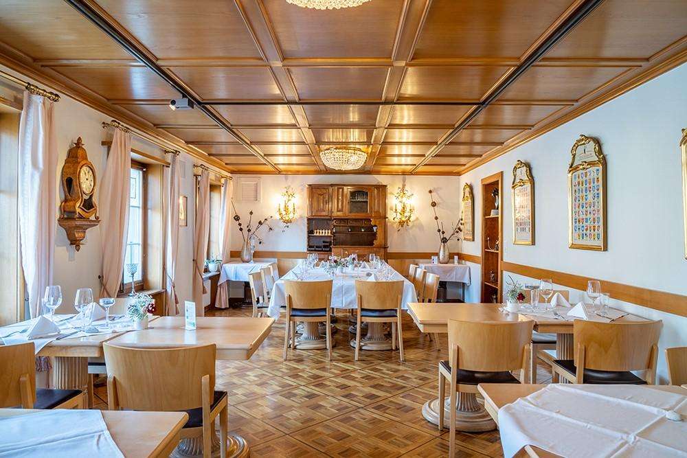 Die helle Gaststube und die sonnige Terrasse laden zum Verweilen ein.
