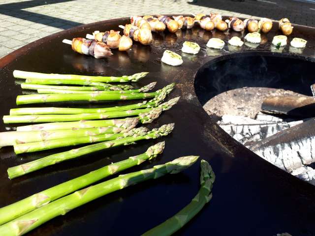Seeberger Spargelfest mit Spargelrisotto, Grilladen und anderen kulinarischen Köstlichkeiten, vielfältiges Rahmenprogramm mit Riesensandkasten, Trampolin, Rutschbahn, Schaukel, Ponyreiten, Kletterwand und Spargelführungen.