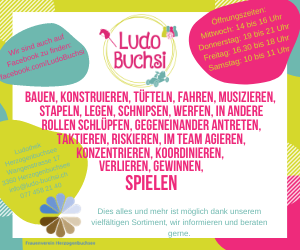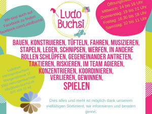 Die Ludothek verleiht Gesellschaftsspiele, Lernspiele, Holzspielzeug, Puzzles, Musikinstrumente, Geduldsspiele, Fahrzeuge, Spiele für Draussen, Aktions- und Grossspielzeug, Konstruktionsspiele und Rollenspielmaterial gegen eine Ausleihgebühr.