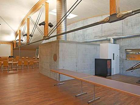 Im Dachstock vom Werk I der Hector Egger Holzbau AG kann der moderne Medienraum (200 m2) als Seminarraum gemietet werden. Speziell: der Raum bietet mit den Fenstern auf der einen Seite helles Tageslicht und auf der anderen Seiten lassen die Fenster Sicht auf die Produktion der Hector Egger Holzbau AG zu.