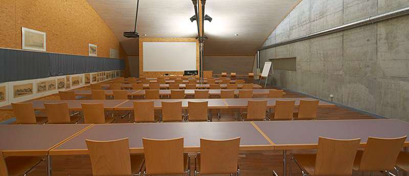 Der Raum eignet sich für Seminare, Schulungen, Medienkonferenzen usw. und bietet Platz für ca. 60 Personen (mit Arbeitsplatz) und ca. 90 Personen mit Konzertbestuhlung.