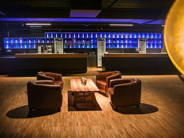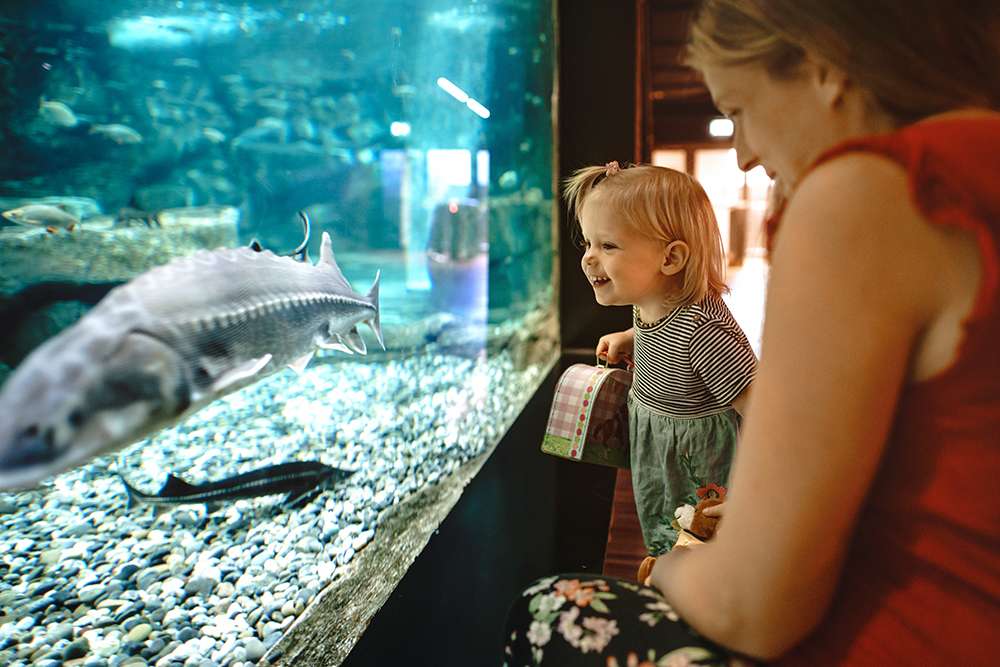 Tauchen Sie zudem ab in die faszinierende Unterwasserwelt mit riesigen Aquarien in einer Gesamtlänge von 42 Metern. Die vier Becken mit mehreren tausend Litern Wasser werden von diversen Fischen wie Stören, Welsen, Rochen und vielen anderen bewohnt. Ebenfalls können in diesem Raum Anlässe bis zu 700 Personen stattfinden. Für aktive Unterhaltung sorgen das Bowling- und Fitnesscenter.